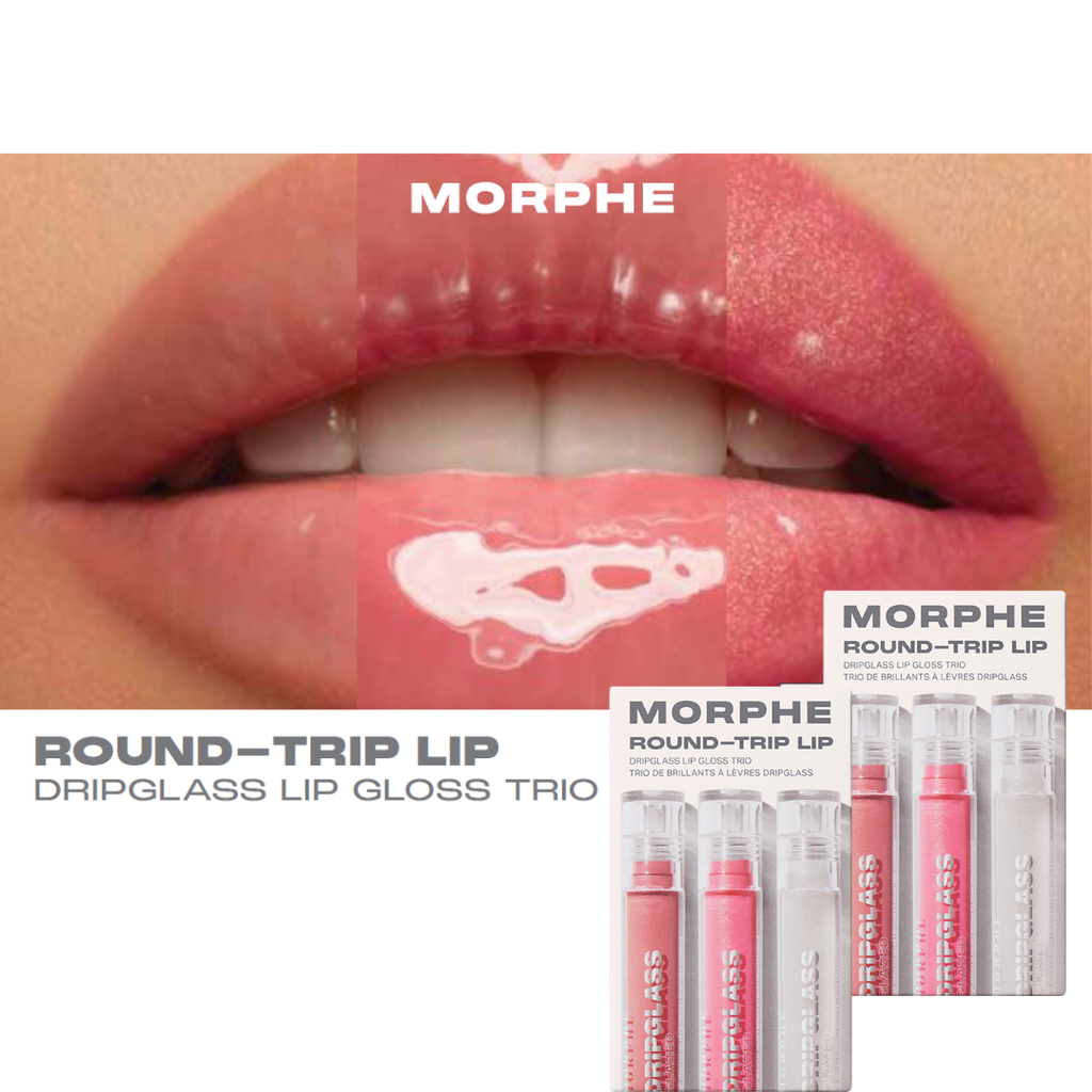 Get glazed and gleaming with this Morphe set. Round-Trip Lip features three of Morphe’s best-selling Dripglass Lip Gloss shades, packaged together for on-the-go shine.