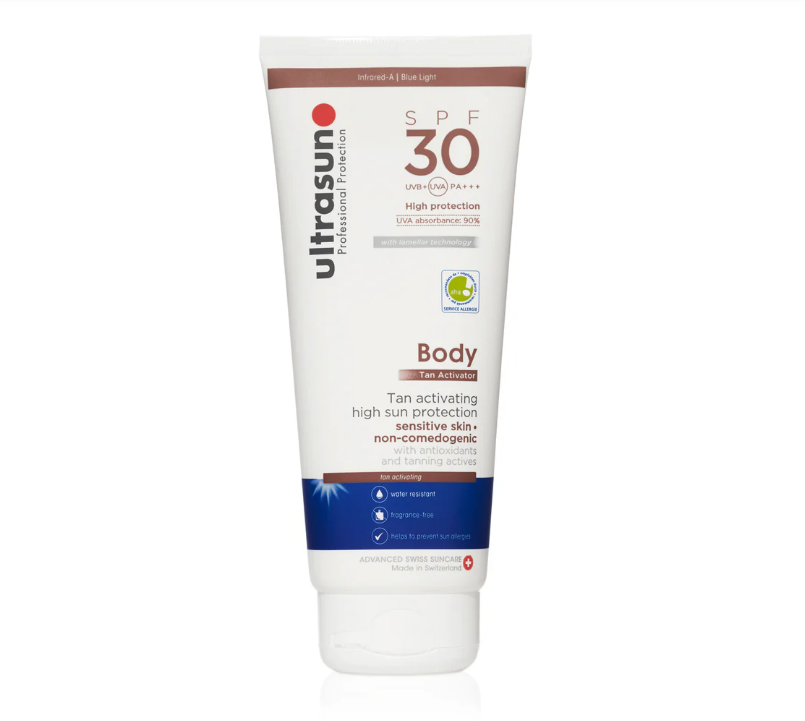Customer Assurance Swiss sun protection brand Ultrasun delivers a unique lamellar formula to maximize a natural tan while protecting the entire light spectrum. This Body Tan Activator SPF30 helps you achieve a radiant, lasting tan with careful UVA/UVB protection and added safeguards against Infrared A and blue light.